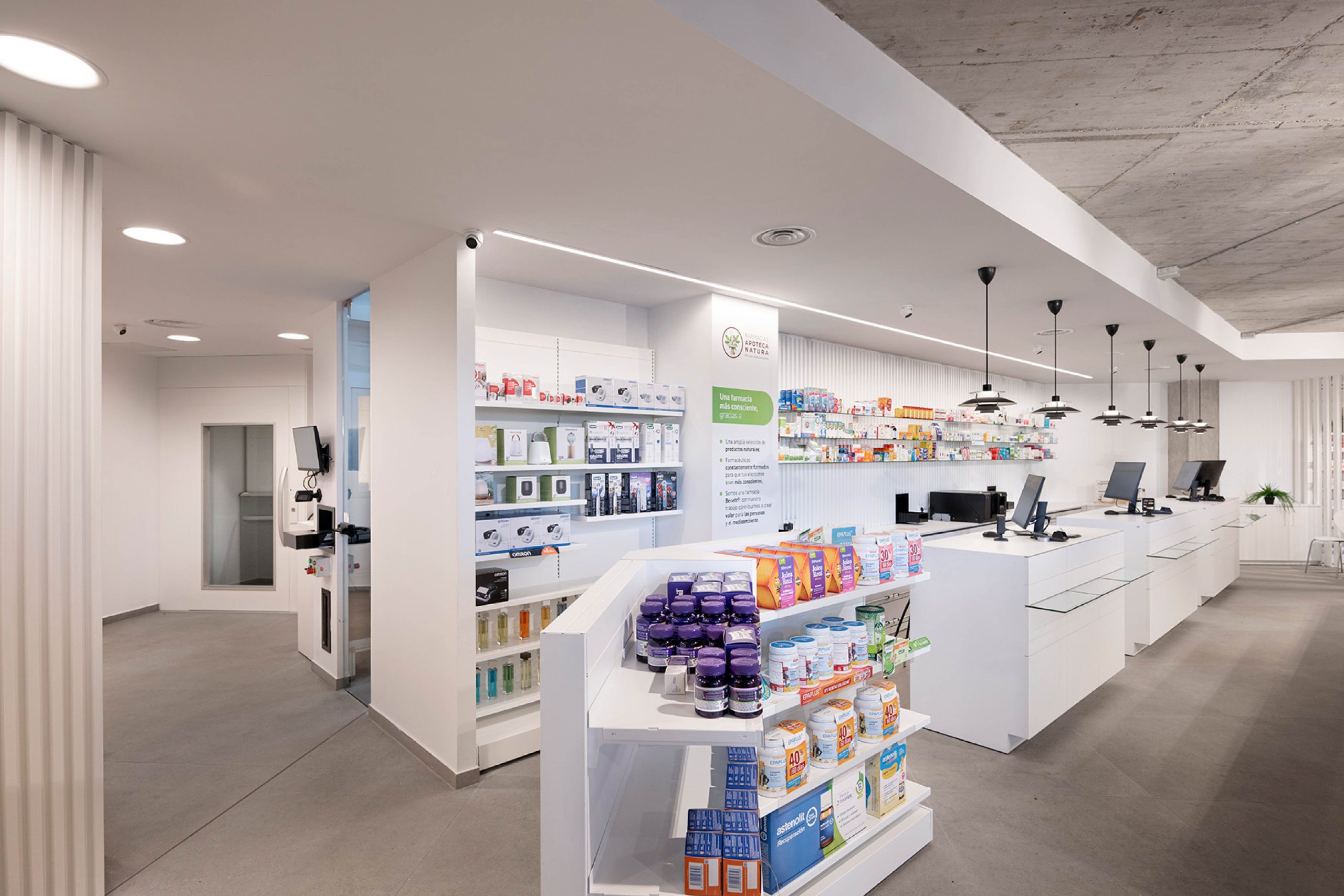 En este local de dos plantas y 300 m², hemos creado un entorno donde el surtido, el consejo farmacéutico y la comodidad del paciente son la prioridad, sin descuidar la eficiencia operativa y la ergonomía para el personal.