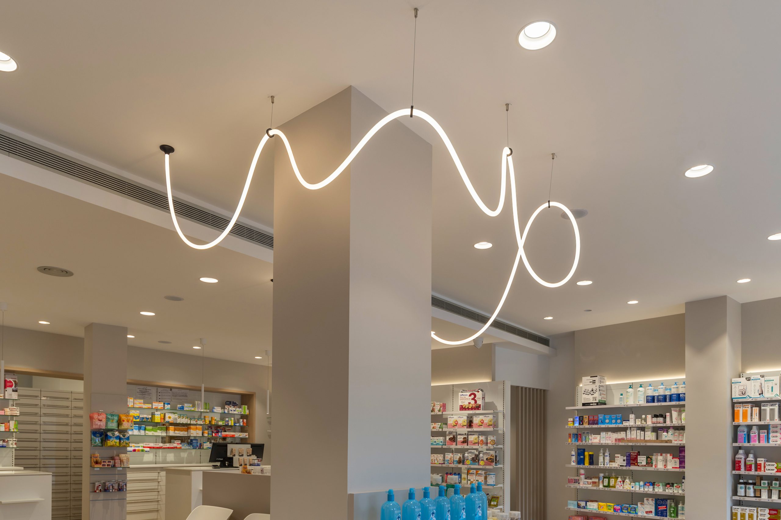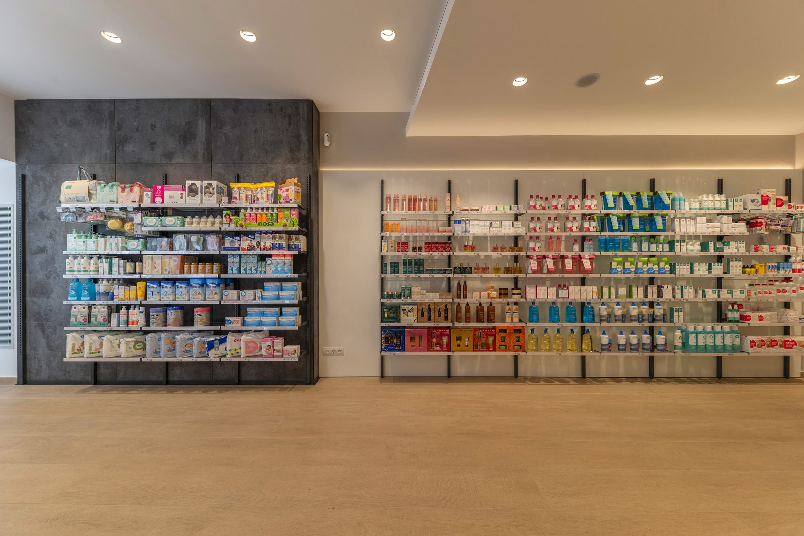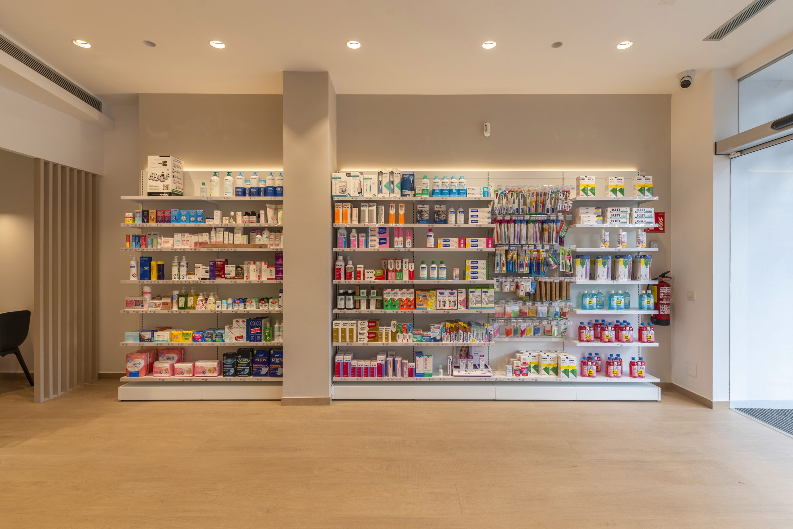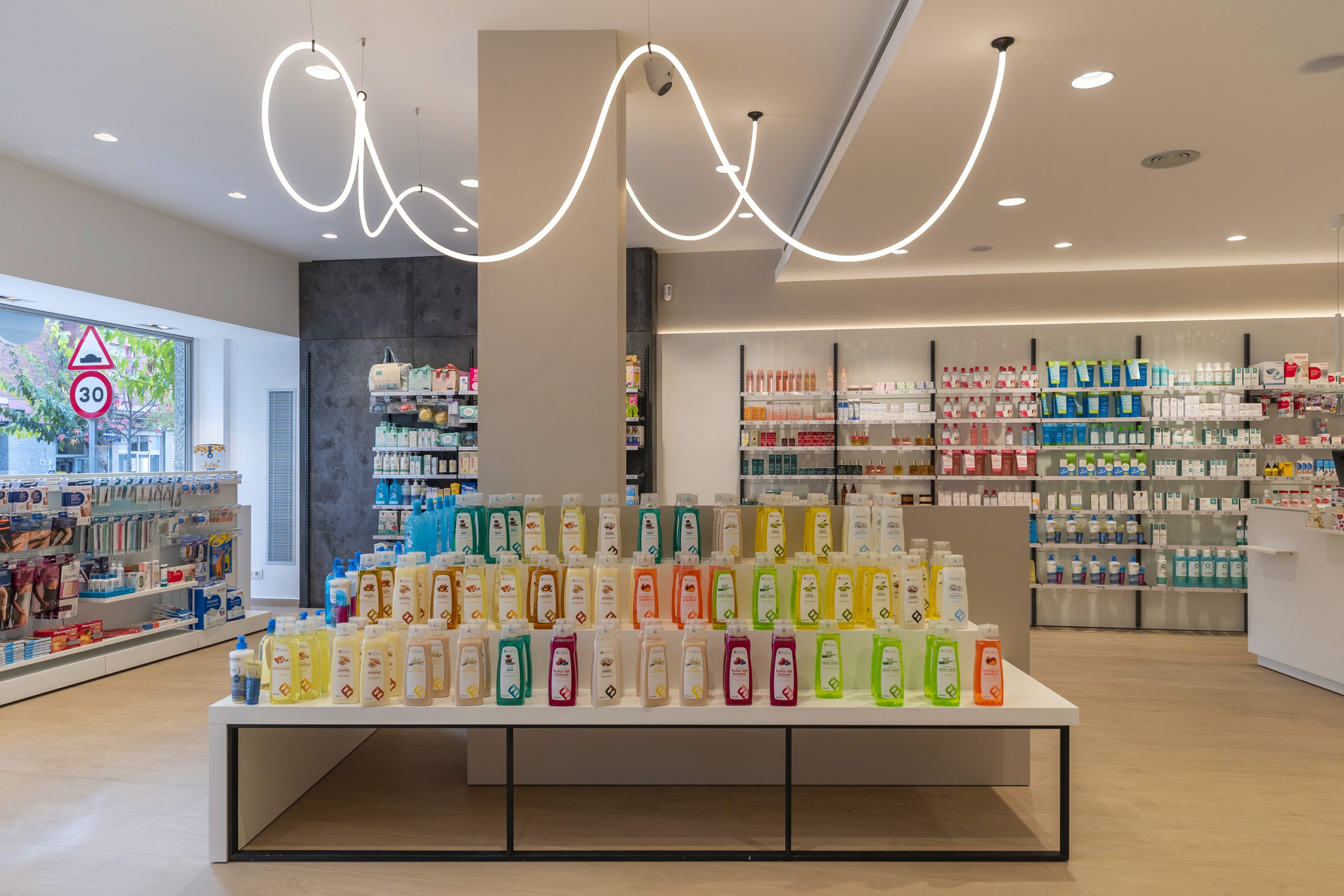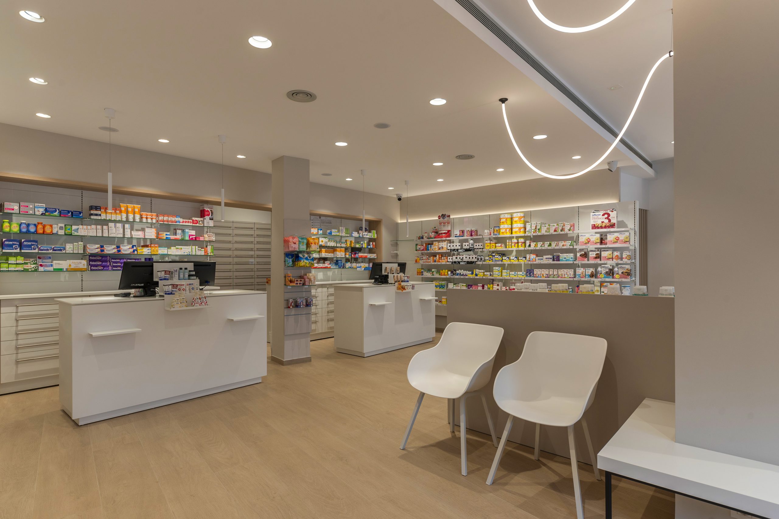 Apertura: Maximizar la visibilidad hacia la calle abriendo al máximo la fachada y haciendo del escaparate una representación integral de la farmacia. Cree un interior abierto y luminoso para que los clientes tengan una visión general de los productos y servicios disponibles.