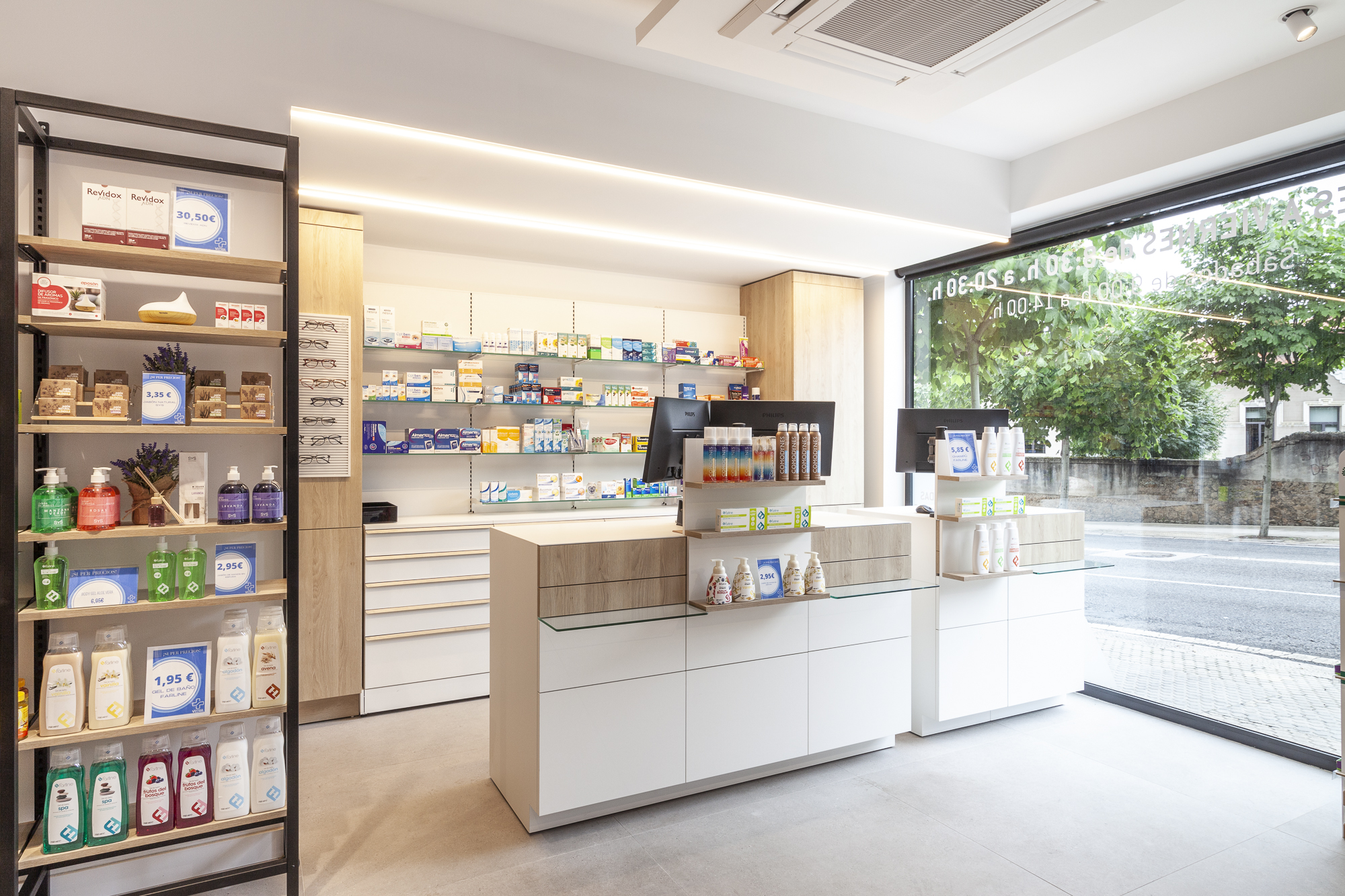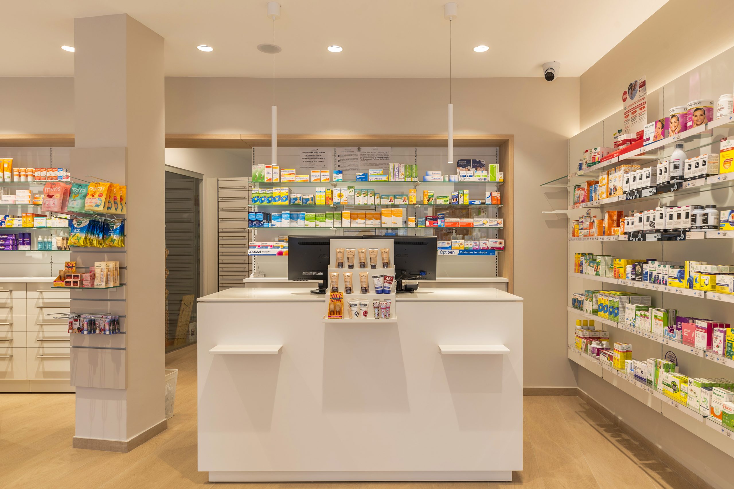Los mostradores Mobil M combinan diseño y trabajo ergonómico, creando un punto de recepción elegante y funcional. Su estética contemporánea se integra armoniosamente en el diseño general de la farmacia, al tiempo que mejora la experiencia del cliente.