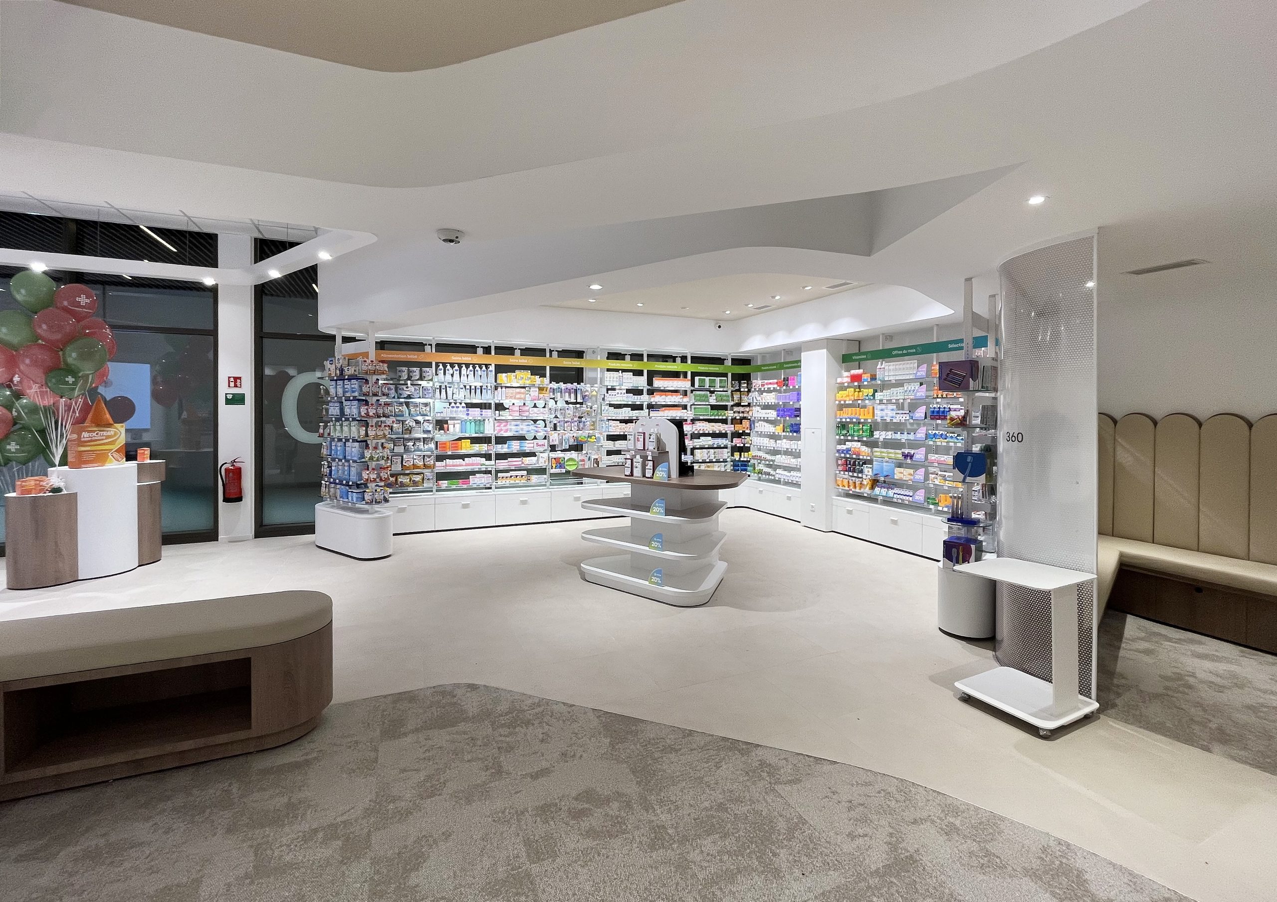 Le parti pris est audacieux : mettre l’accueil et l’attente au centre de l’officine, comme point de départ d’un parcours ouvert sur l’ensemble des services proposés. Le pharmacien ne reste plus derrière son comptoir, il va vers le patient, dans une approche physique et humaine radicalement différente.