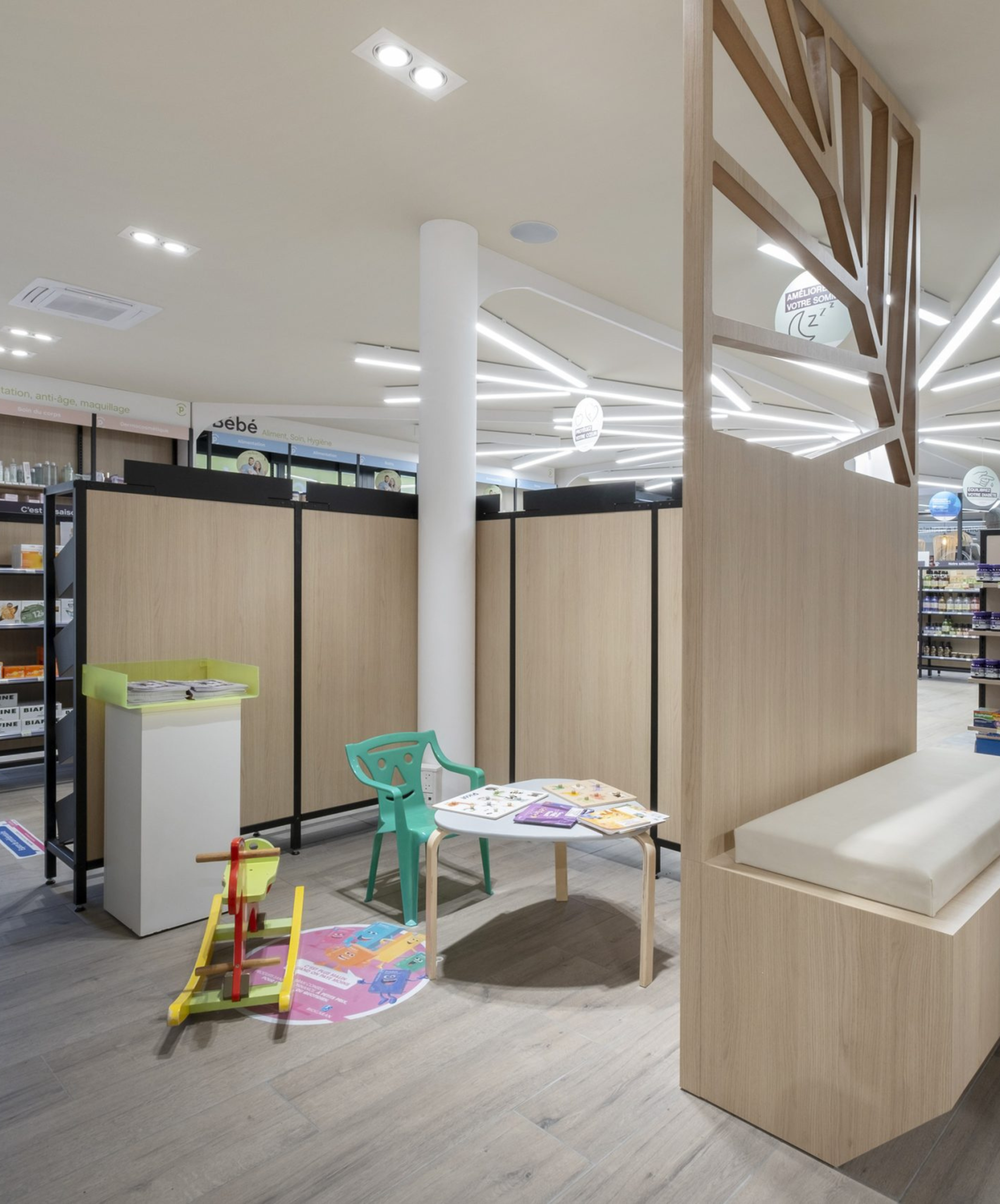 À Vivonne, la Pharmacie Coindreau incarne le concept « Comme à la maison » , alliant modernité et fidélité aux valeurs de Mr Coindreau et de ses équipes. Pensée comme un lieu de santé accueillant et chaleureux, elle valorise les univers Nature et MAD.