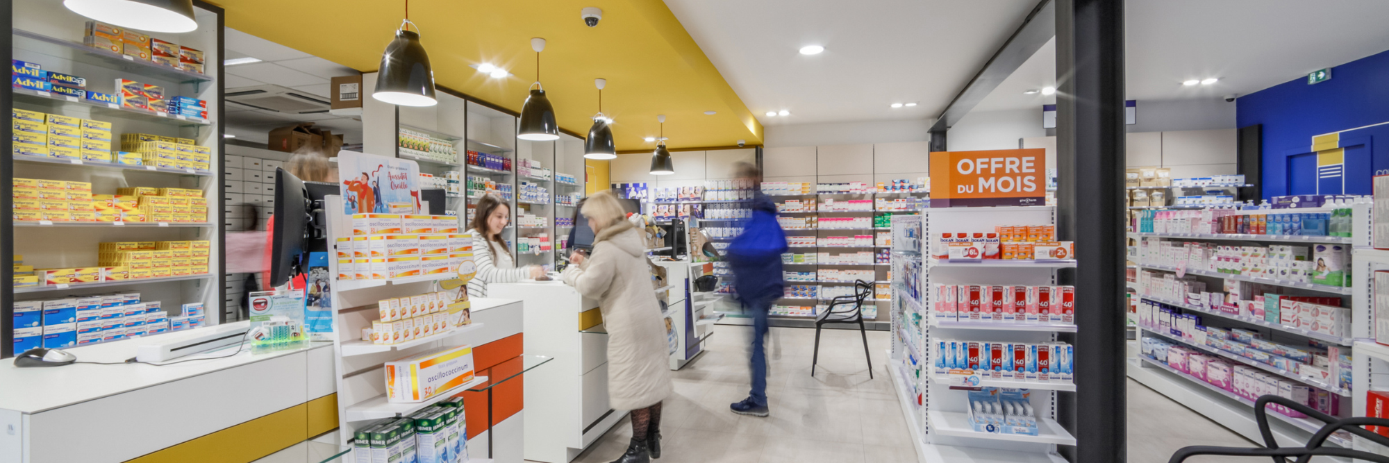 - Une officine moderne et lumineuse, aux univers bien définis.