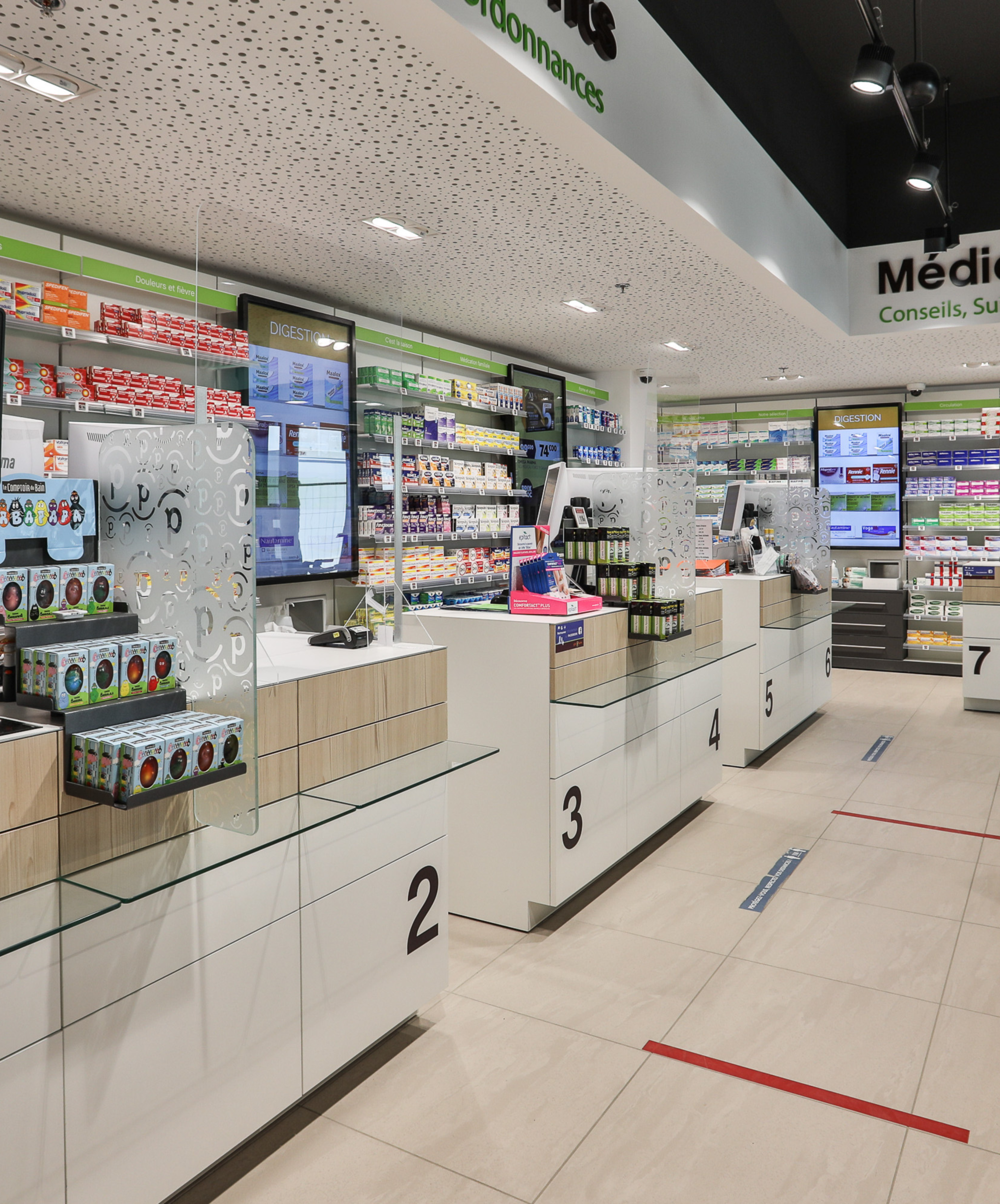 - Optimiser le parcours d’achat et la gestion des flux issus des deux points d’accès de l’officine.