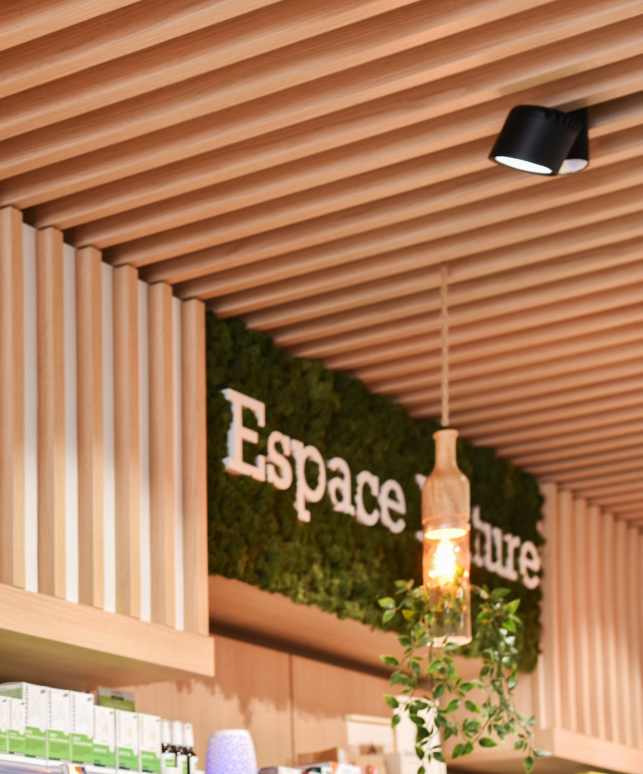 Ce projet d’agencement a permis de créer un univers chaleureux, mêlant bois naturel, teintes douces et éclairages cocooning, pour offrir une expérience client fluide et conviviale.