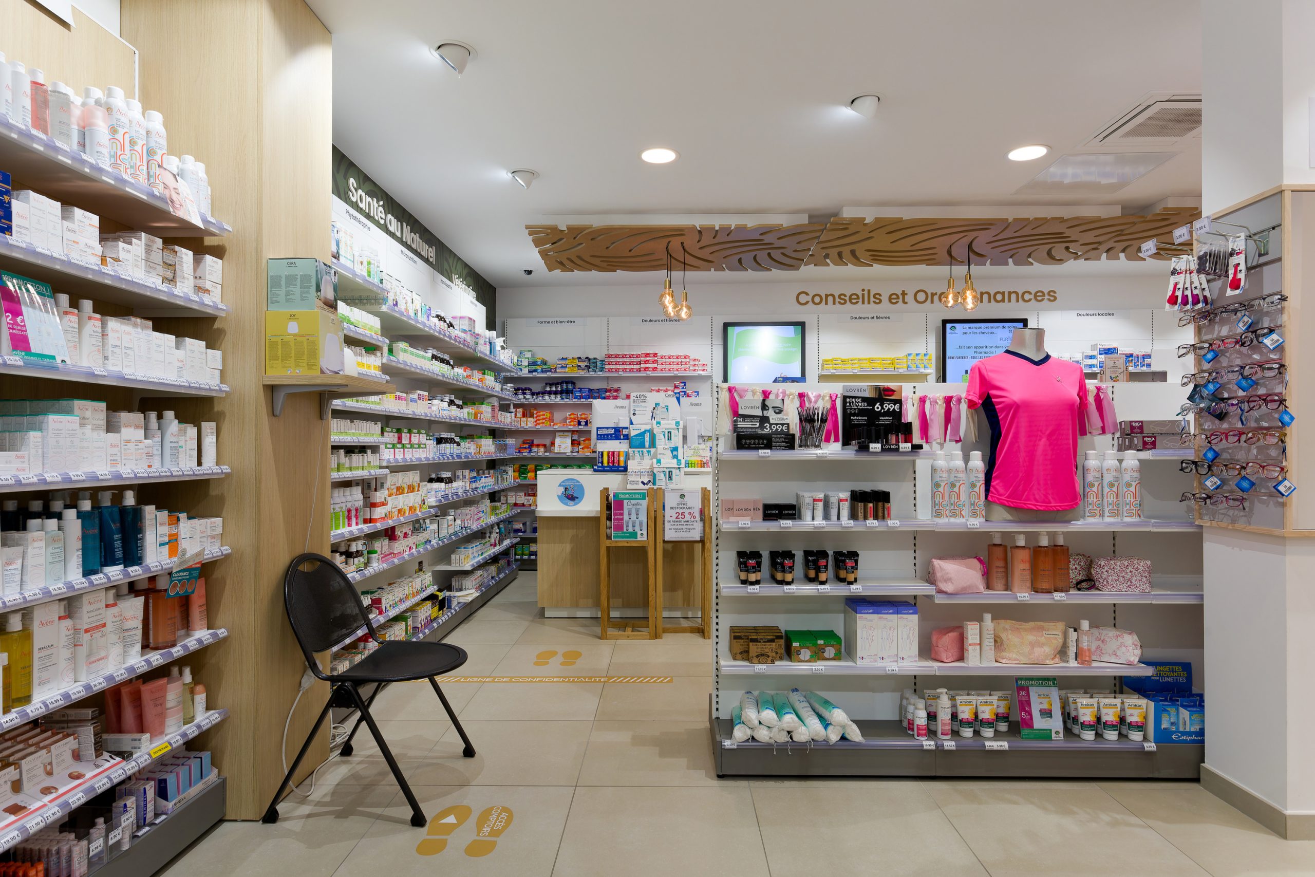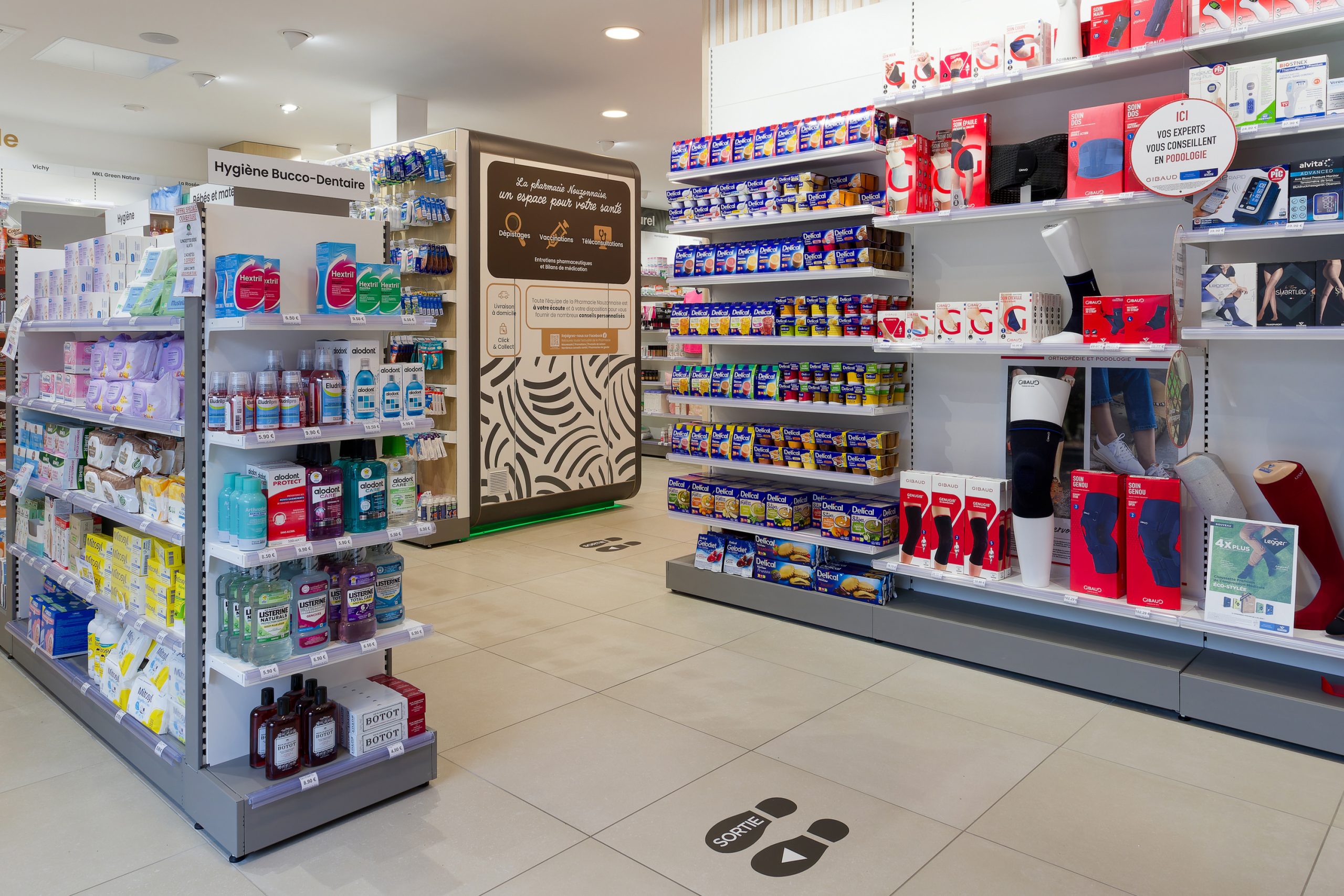 • Univers bien distincts, espace maintien à domicile, orthopédie, espace bébé maman puis beauté, gestion des patients par un ascenseur.